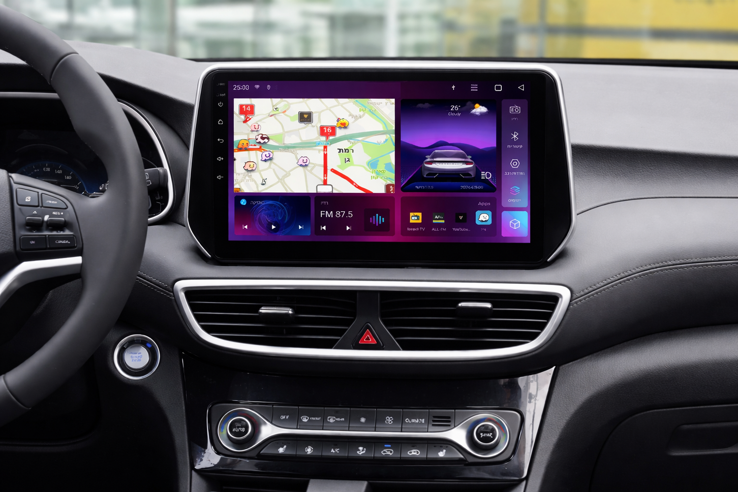- מפות: Waze, Google Maps, Apple Maps – על מסך גדול ונוח.